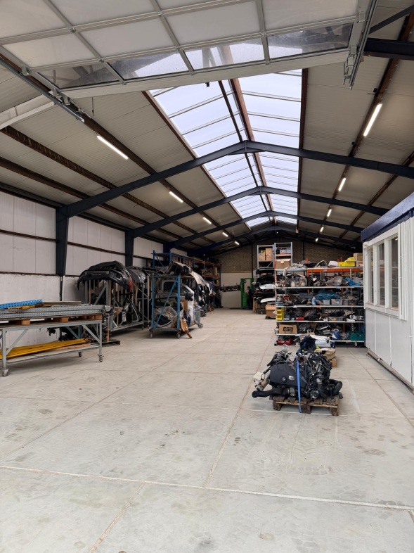 • elektrisch bedienbare overheaddeur in de kopgevel, circa 4 meter breed en 4 meter hoog