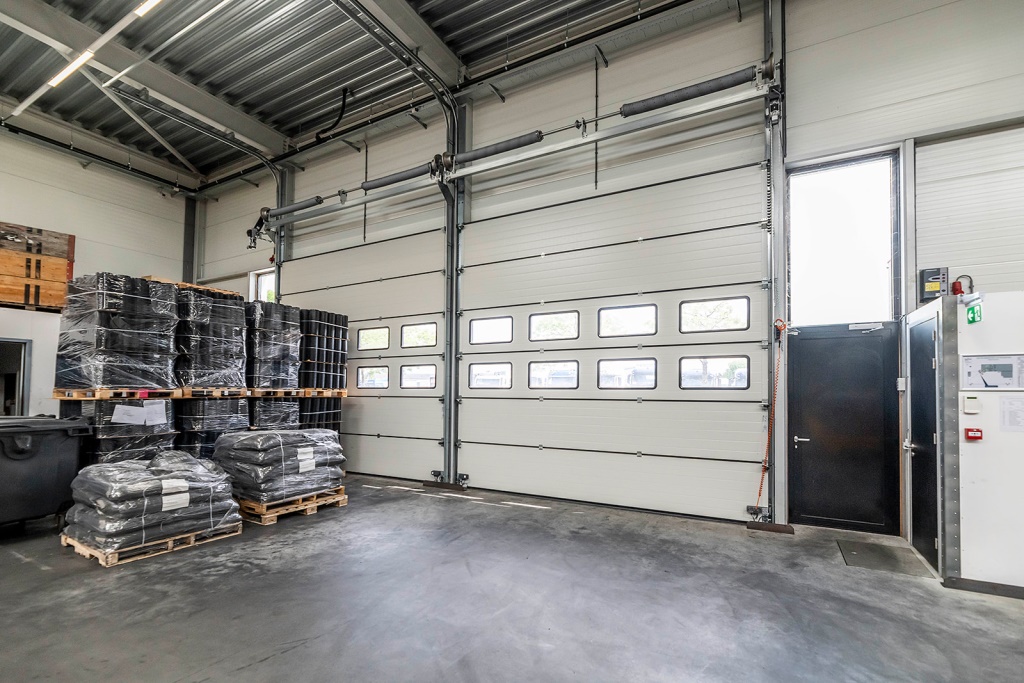 • ruime bedrijfshal met elektrisch bedienbare overheaddeuren