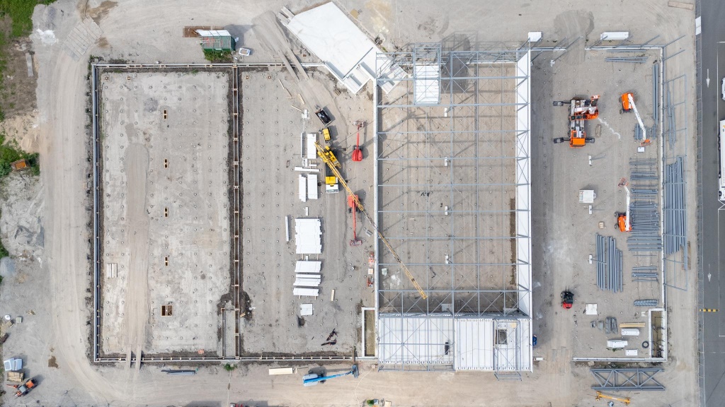 • vrije hoogte onder de stalen spanten en lichtlijnen circa 7,3 meter