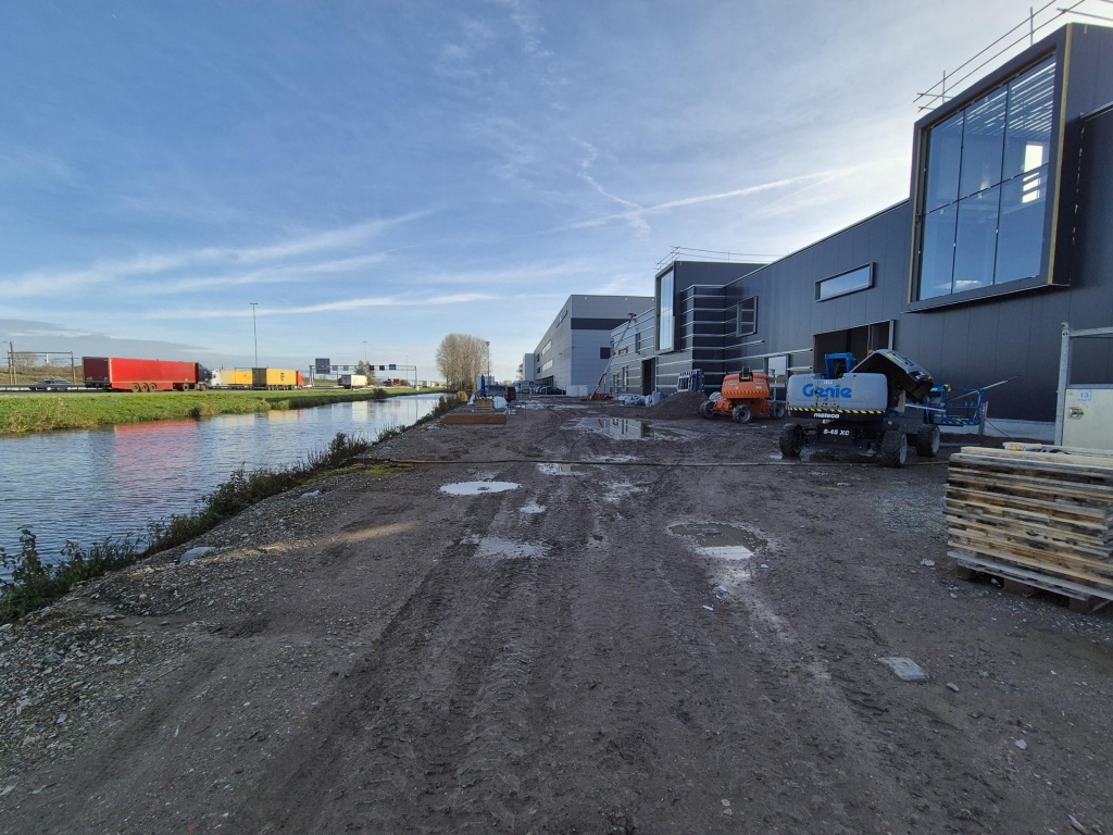 • rondweg langs beide zijkanten en aan de snelwegzijde bestaande uit een onderheide betonvloer