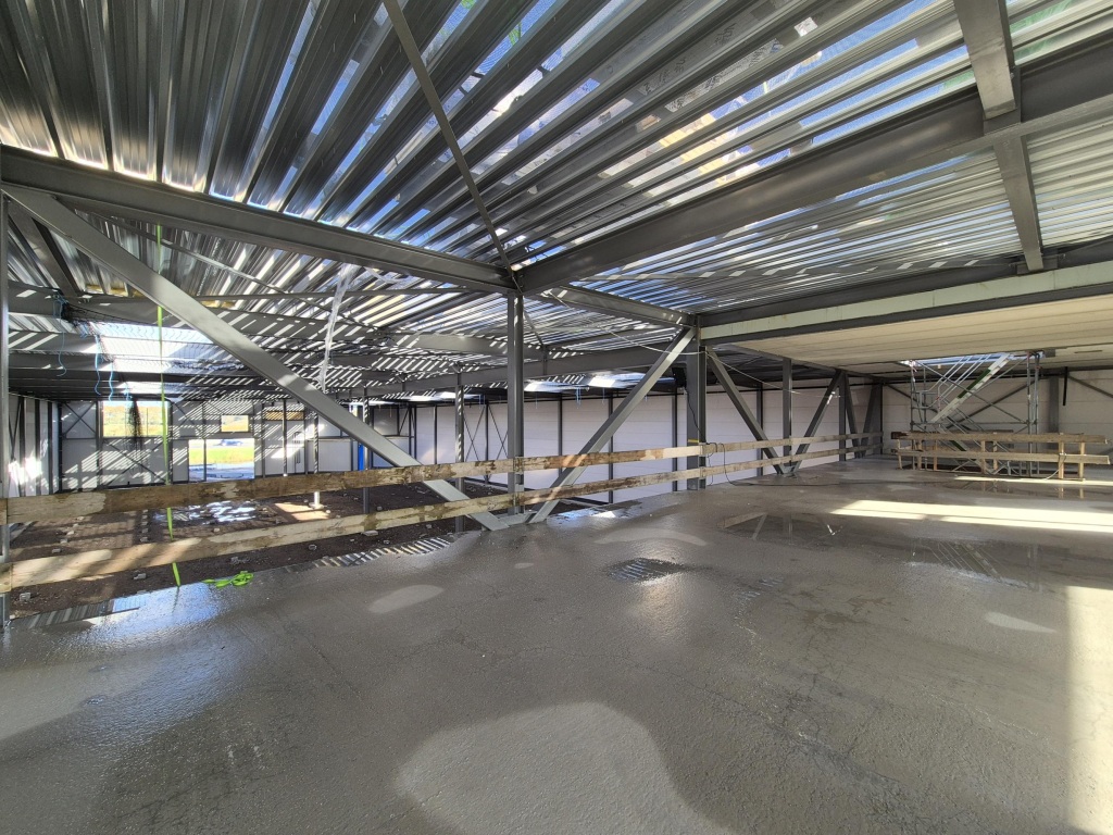 • vrije hoogte onder de stalen spanten en lichtlijnen circa 7,3 meter