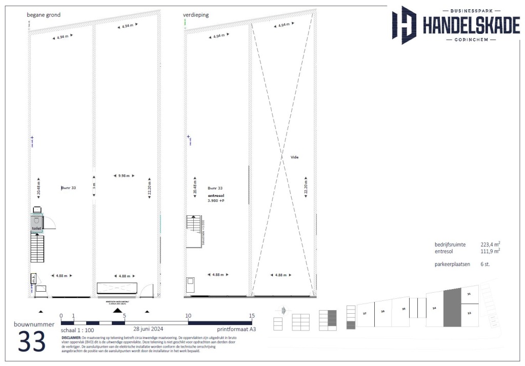 Op een prachtige, unieke locatie langs het Merwedekanaal in Gorinchem wordt 'Businesspark Handelskade' gerealiseerd. Een bedrijventerrein met bedrijfsunits in verschillende varianten en metrages, deels of geheel over twee lagen (begane grond en eerste verdieping). Businesspark Handelskade bestaat uit twee fasen. Fase 2 omvat het bouwblok 5 van het plan. Deze fase bestaat uit in totaal 7 bedrijfshallen. De units zijn compleet opgeleverd en onder meer voorzien van elektra, verlichting, elektrisch bedienbare overheaddeur, toiletruimte, uitstortgootsteen, pantry en een warmtepomp.