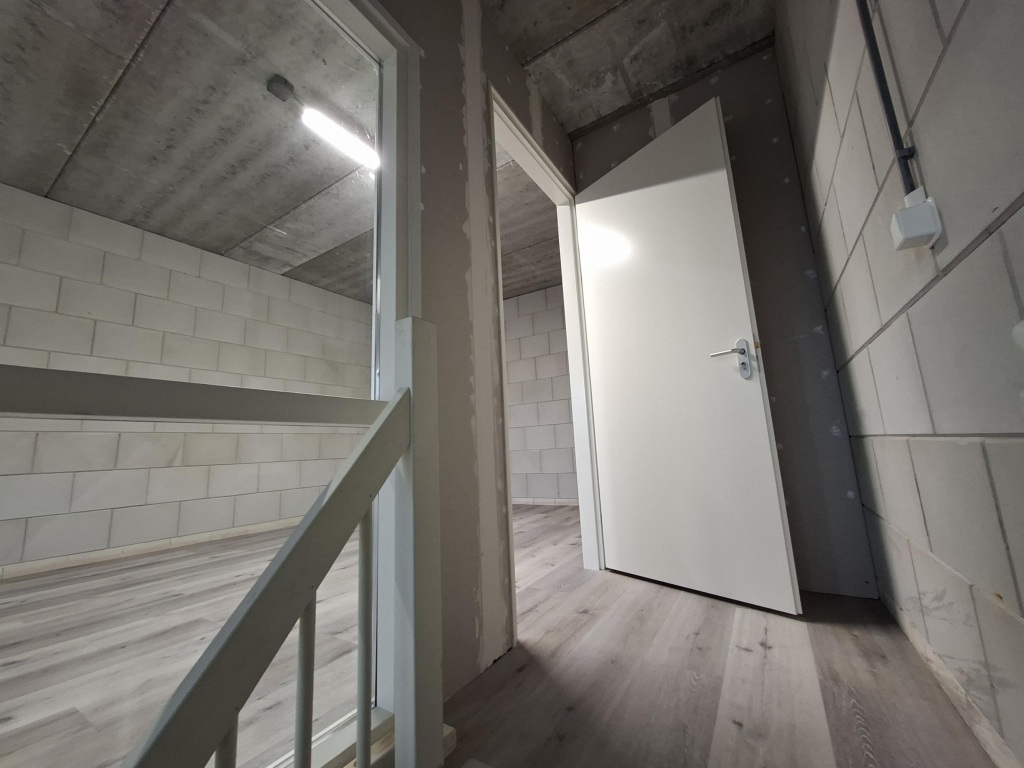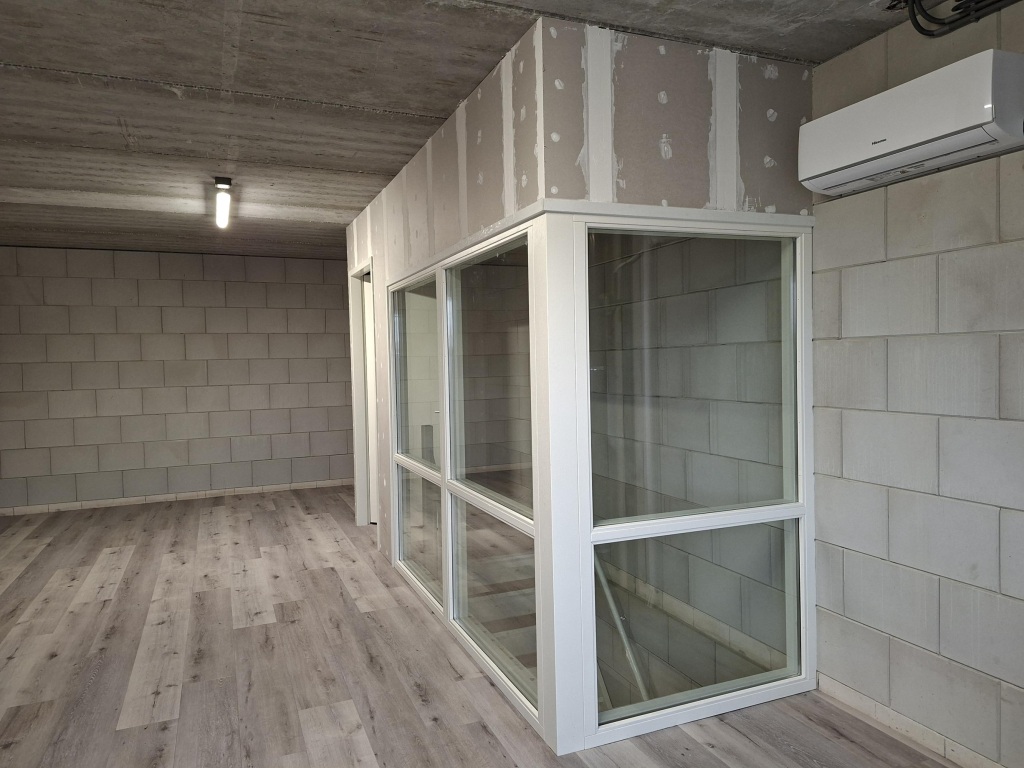 De verdiepingsvloer is voorzien van een portaal, zodat de ruimte is afgesloten van de begane grond. Het is daardoor mogelijk om de kantoorruimte te gebruiken, zonder overlast te hebben van de activiteiten in de bedrijfsruimte. De vloer op de eerste verdieping is fraai afgewerkt met pvc.