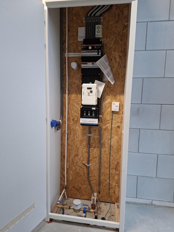 • meterkasten met aansluitingen elektra, water en glasvezelverbinding.