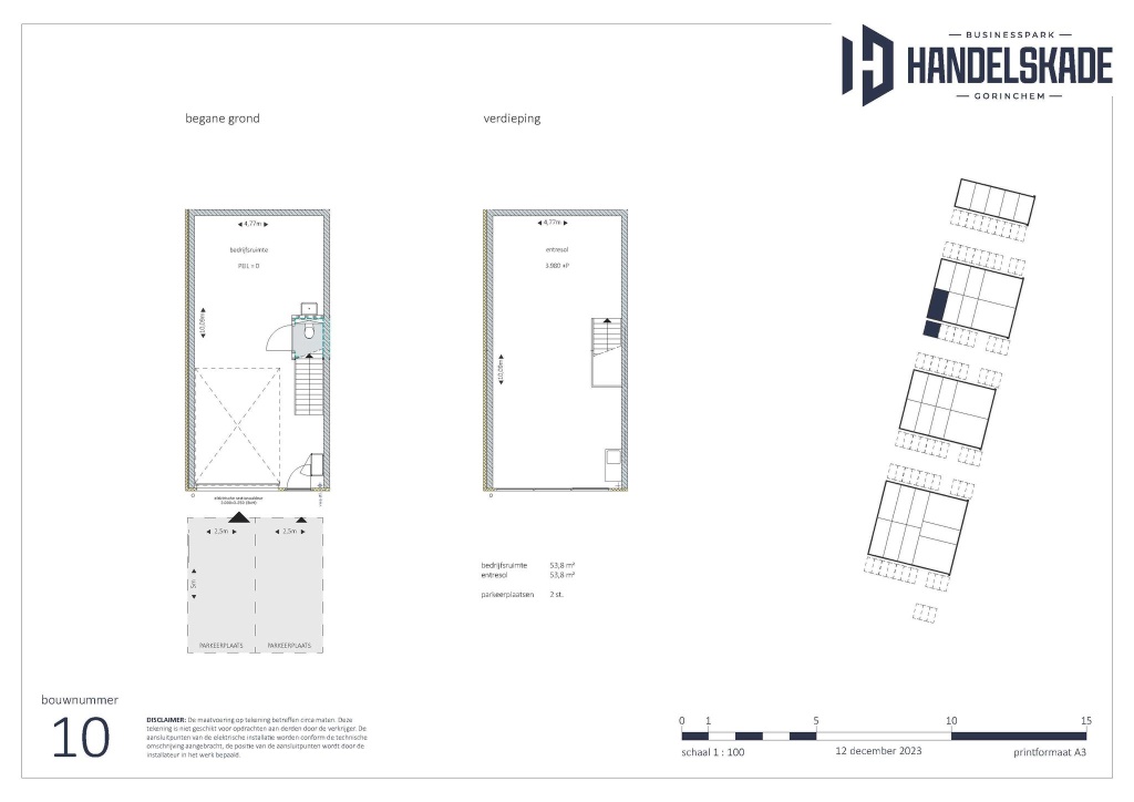 Een representatieve nieuwbouw bedrijfsunit die onderdeel uitmaakt van het bedrijfsverzamelgebouw nabij de voorzieningen van de vestingstad Gorinchem. De unit maakt deel uit van de nieuwbouwontwikkeling Businesspark Handelskade en wordt gerealiseerd op bedrijventerrein Handelskade in Gorinchem. De bedrijfs-/kantoorunit wordt opgeleverd met een compleet voorzieningenniveau, waaronder elektrische overheaddeuren, koeling/verwarming, led-verlichting, pantry en toilet. Iedere unit beschikt over eigen zonnepanelen en gemarkeerde parkeerplaatsen.