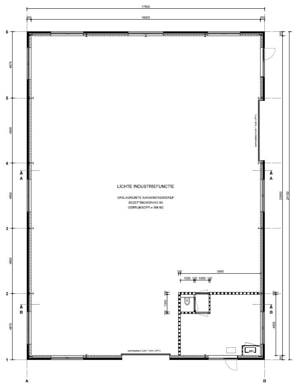 • Elektrisch bedienbare overheaddeur (3,50 m breed en 3,50 m hoog) in de kopgevel