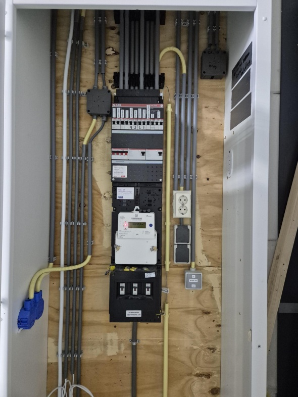 • meterkast met aansluiting elektra en water