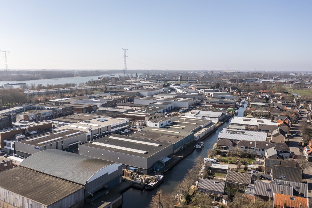Geschakelde, functionele bedrijfshal aan de Nijverheidsstraat op bedrijventerrein ‘de Peulen’ in Hardinxveld-Giessendam. Het pand staat op een perceel eigen grond van 623 vierkante meter en grenst aan de achterzijde aan het vaarwater, de zogenaamde Karnemelksloot, verbonden met de Giessen en via de sluis met rivier de Merwede. De bedrijfsruimte betreft een goed toegankelijke loods, onder meer voorzien van een elektrisch bedienbare overheaddeur, een bovenloopkraan en een inpandig werkplaatskantoor.