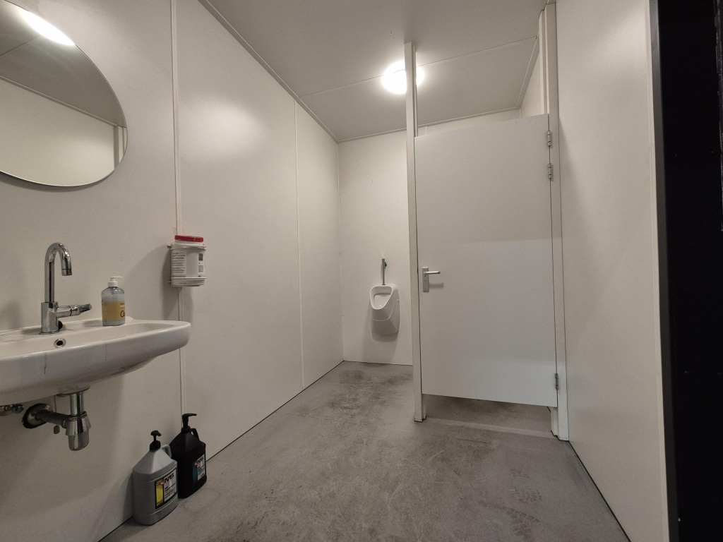 • werkplaatskantoor met verlichting, verwarming en daglichttoetreding.