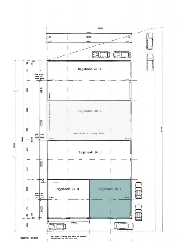 • handbedienbare overheaddeur van ca. 4,00 meter breed en ca. 4,50 meter hoog
