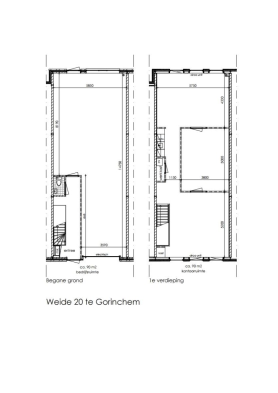 • kantoorgedeelte is uitgevoerd als gipsplafond (gestuct en gesausd) met daarin geïntegreerde verlichting