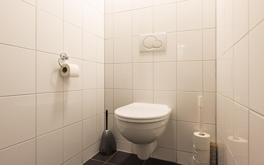 • per laag een geheel betegeld toiletgroep met 2 toiletten en een voorportaal voorzien van wastafel