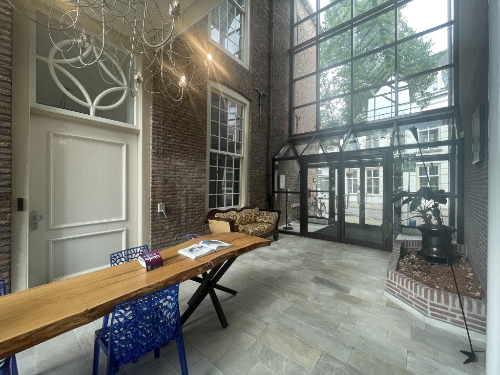 • gezamenlijke hal met leestafel, toegang tot parkeerterrein en kantoorruimtes