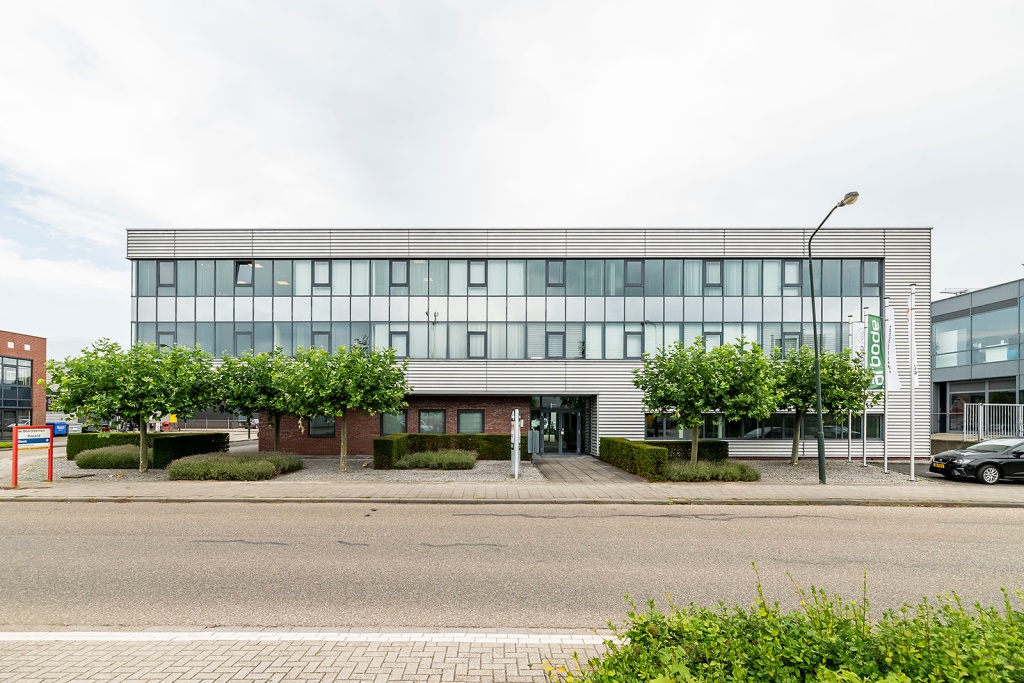 Dit kantoorobject is gerealiseerd op een fraai hoekperceel, direct aan de entree en langs de doorgaande route over het bedrijventerrein Papland.