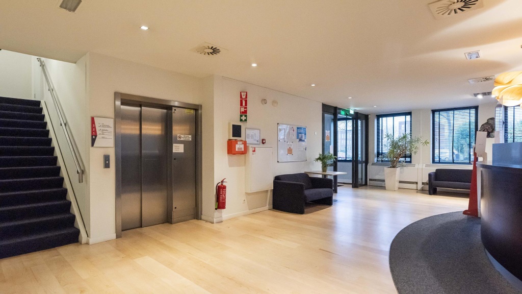• gezamenlijke entree met tochtportaal, trapopgang en personenlift