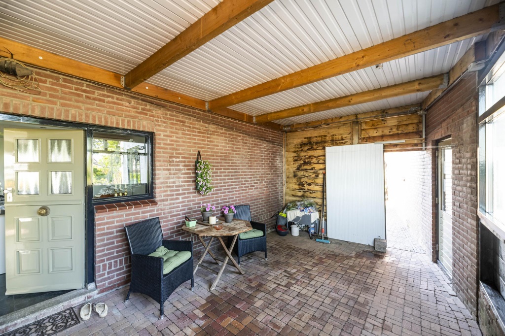 • Zadeldak bedekt met pannen, deels plat dak en deels zadeldak met vermoedelijk asbesthoudende golfplaten